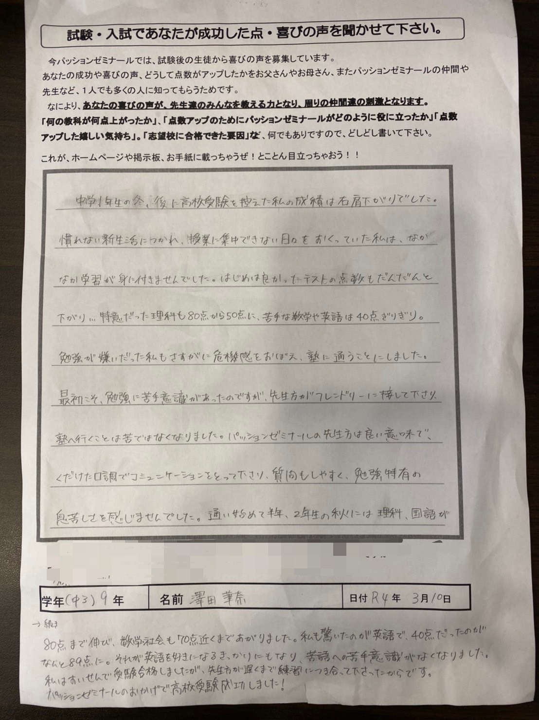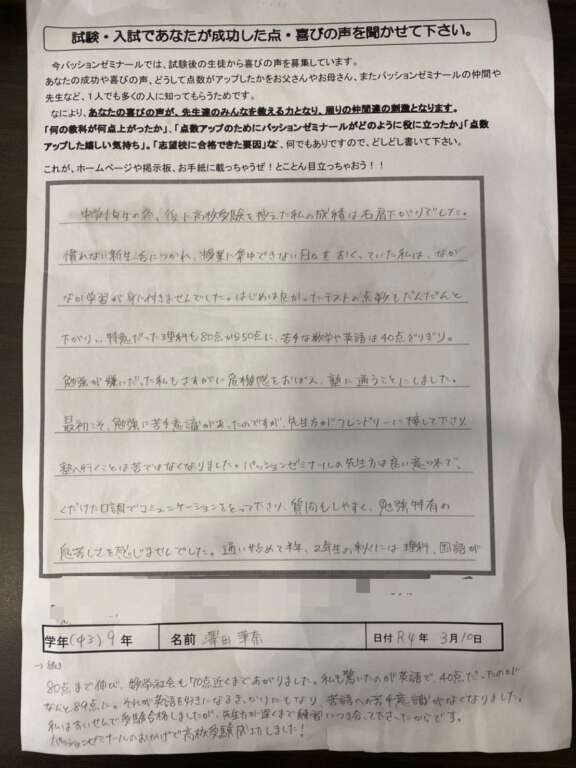 かなちゃん 合格の声
