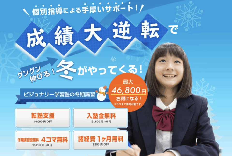 ただいま冬期講習をお得に受講できる入塾キャンペーンを実施中です。